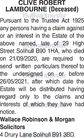 Clive Robert Lambourne Decd Ref 0000647898