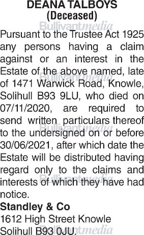 Deana Talboys Decd