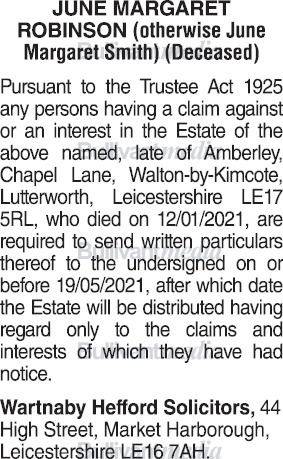 June Margaret Robinson Decd