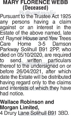 Mary Florence Webb Decd