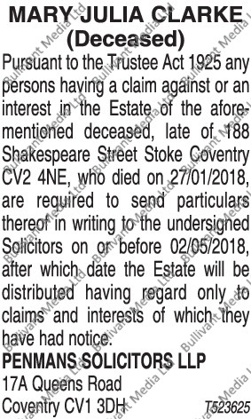 Mary Julia Clarke 4 X 1 Ref 523625