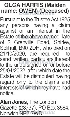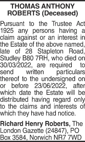 Adverts that have expired from the newspaper.