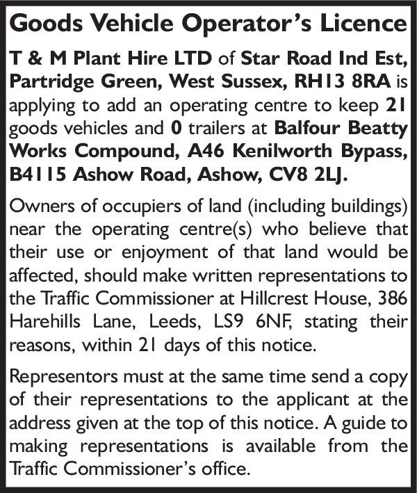 T&M Plant Hire Limited